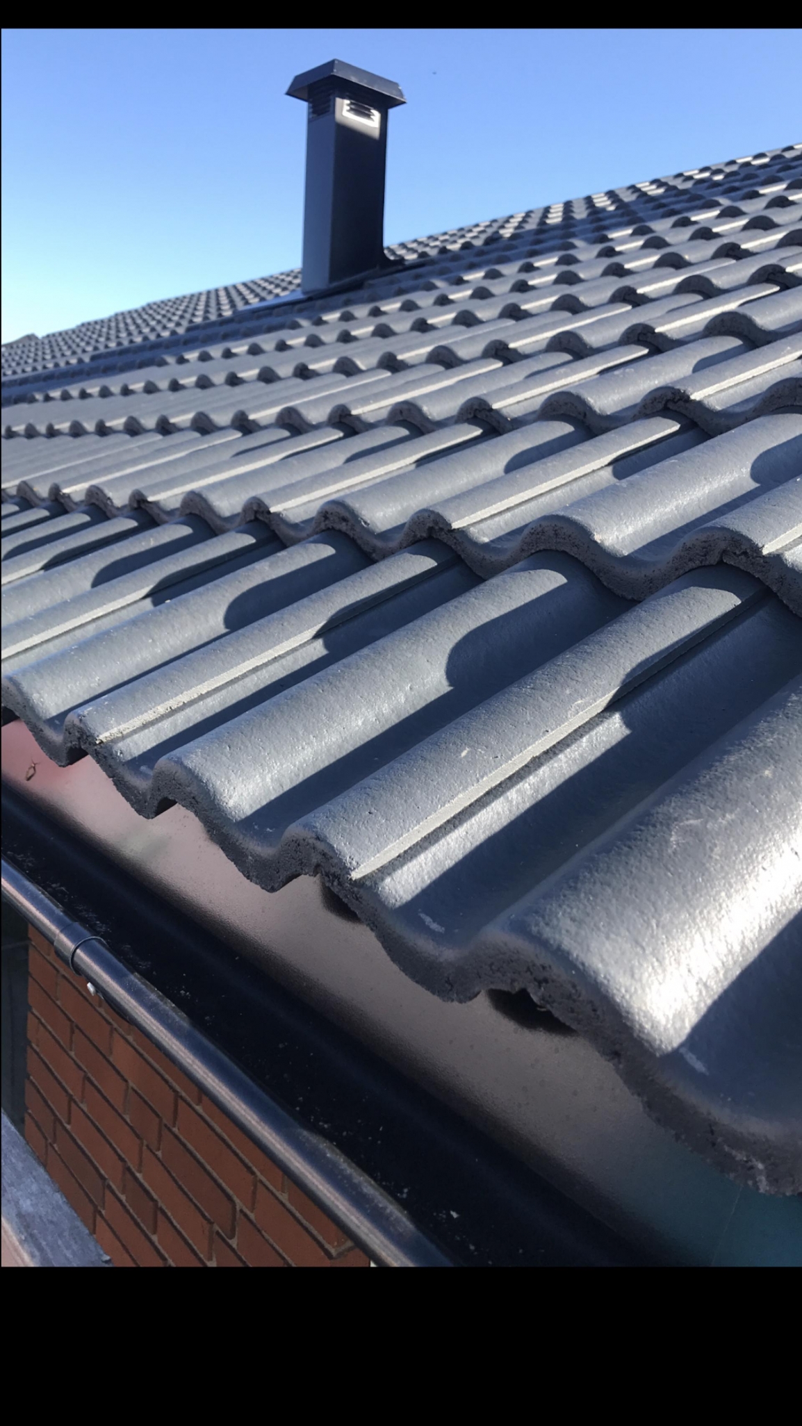 Snyggt mörkgrått tak från Monier (​​​​​​​elegant 2-kupig).